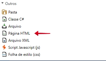Observe a figura abaixo destacando a opção Página HTML.