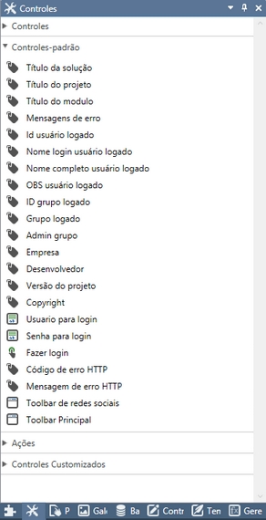 Os controles padrões para o módulo Página de dados são os seguintes: