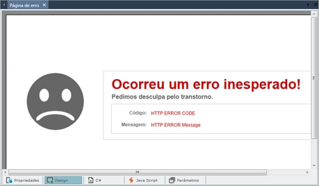 Um módulo usado como Página de erro poderá ser usado para exibir as mensagens de erro de forma padronizada, em qualquer situação de erro durante a execução da aplicação. O Gvinci oferece um template padrão para página de erro, que pode ser alterado conforme você desejar.