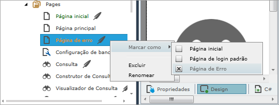 3. Clique sobre o módulo com o botão direito do mouse e, no menu de atalho, selecione "Página de erro";