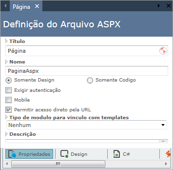 Permitir acesso direto pela URL: Permite que a página possa ser acessada diretamente pelo browser, somente com a entrada da URL.