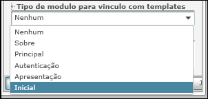 Tipo de módulo para vínculo com templates: Apresenta uma lista de nomes de templates disponíveis para o módulo em definição.
