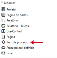 Um item de processo é inserido dentro de um módulo de processo pré-definido:
