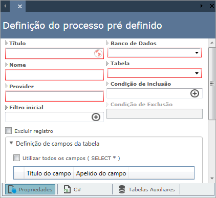 Definição de campos da tabela: Marque quais serão os campos utilizados no processo.