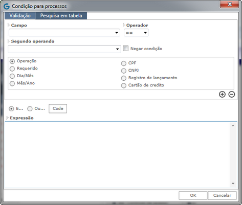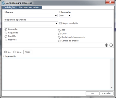 Campo: Insira o campo da tabela que deverá receber a condição.