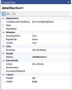 É nessa área que são inseridos os dados a serem listados no relatório. As propriedades desta área são as seguintes: