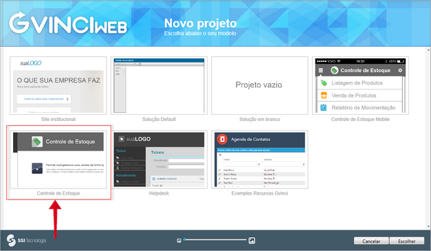 1. Crie uma nova solução usando a aplicação exemplo Controle de Estoque, no menu Arquivo > Novo;