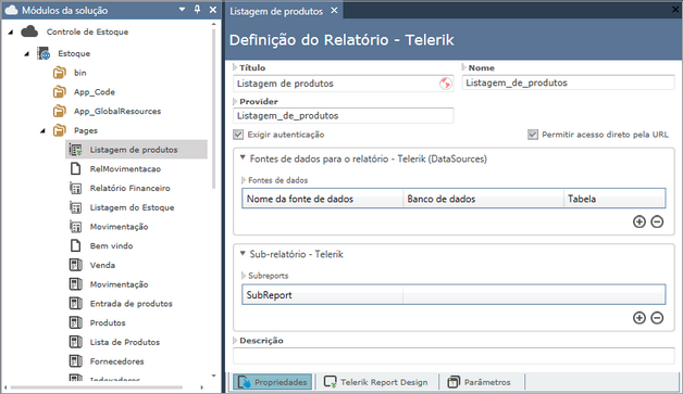 Neste tópico vamos inserir um relatório Telerik no exemplo Controle de Estoque.