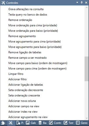 As ações para o módulo Construtor de consultas estão disponíveis no painel Controles.