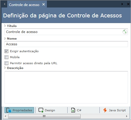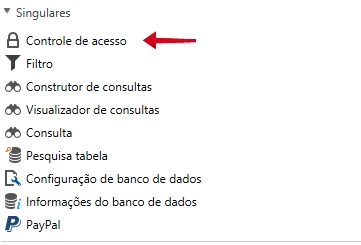 Permite criar um controle de acesso que será usado para cadastro de grupos de usuários com permissões para acessarem a aplicação.