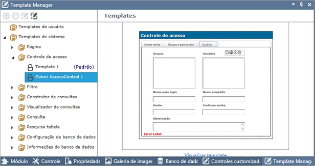 A figura abaixo exibe um template para o módulo controle de acesso.