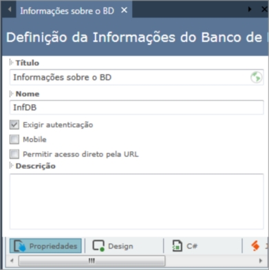 Apresenta informações sobre bancos de dados tais como nomes de tabelas, campos e suas propriedades principais.