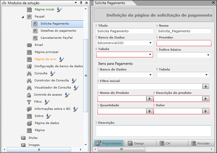 Descrição: Insira uma descrição para o módulo de solicitação de pagamento.