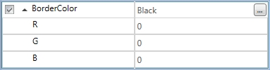 BorderColor / Cor da borda: Altera a cor da borda do controle, utilizando o esquema RGB (Vermelho, Verde e Azul), além de outras opções disponíveis na paleta de cores.