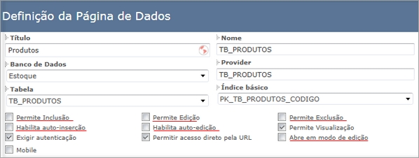 DisableOnNavigation / Desabilita em Navegação: Habilita e desabilita o uso do controle durante a navegação. É utilizada para que o controle seja desabilitado quando a página estiver em modo de navegação, ou seja não estiver sendo editada ou em momento de inclusão de registros. A página estará em modo de navegação se as propriedades da página em destaque abaixo (exceto Mobile) forem desmarcadas: