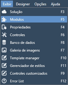 1. Abra o painel Módulos através do menu Exibir, ou pressione <F5>;