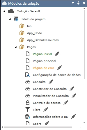 Quando uma solução default é criada, os seguintes módulos são inseridos automaticamente pelo Gvinci: