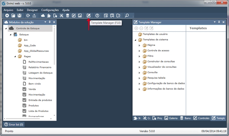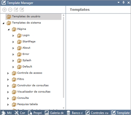 Para abrir o painel Template Manager, ilustrado abaixo, utilize o botão . A tecla <F10> também pode ser utilizada para exibir o painel.