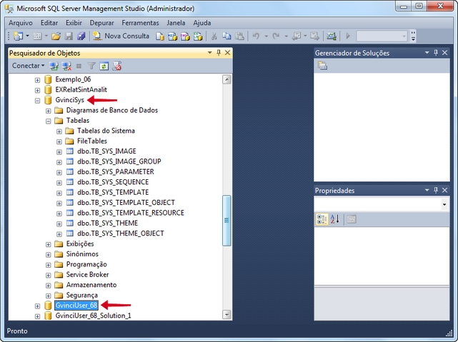 Para fazer backup (cópia de segurança) dos templates no Gvinci, você deve primeiramente copiar os bancos de dados que começam com "Gvinci". Podemos visualizar esses bancos de dados através do SQL Server Management Studio.