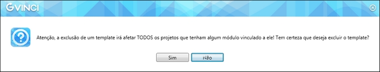 Em seguida, outra confirmação será necessária, visto que, ao apagar o template, todos os módulos que estiverem associados a ele serão afetados, inclusive em outros projetos.