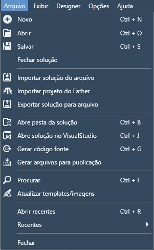 É usada para importar um projeto que tenha sido exportado anteriormente. Para detalhes, consulte o tópico Importando uma solução.
