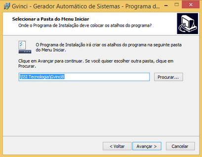 12. Mantendo todas as opções marcadas, avançamos para a tela de definição da pasta do menu para os atalhos: