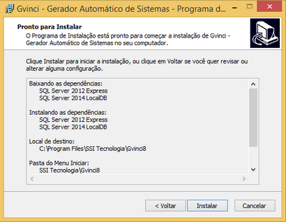 14. Temos então a tela de confirmação da instalação, apresentando as definições escolhidas, clique em "Instalar"