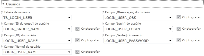 Tabela de usuários: Insira o nome da tabela de usuários.