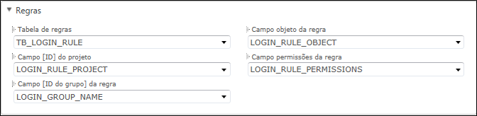 Tabela de regras: Neste campo é inserido o nome da tabela que contém as regras de autenticação.