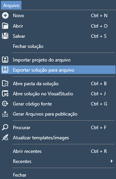 1. No menu Arquivo, clique em "Exportar solução";