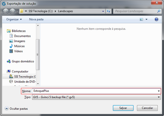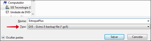 Observe que o tipo do arquivo da solução será um "backup" - cópia de segurança - feito pelo Gvinci X, utilizando a extensão .gvX.