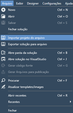 1. Abra o menu Arquivo e clique em "Importar projeto do arquivo";