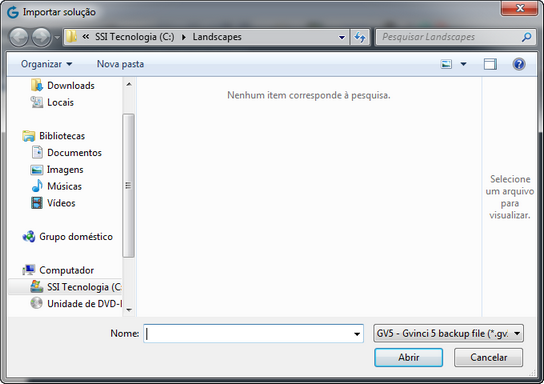 Os arquivos de solução que podem ser importados possuem a extensão .gvX, conforme é mostrado na parte inferior da figura acima.