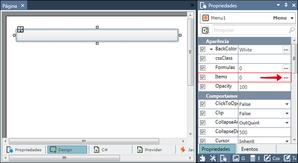 2. Pressione <F4> para exibir o painel Propriedades e selecione a propriedade Items;