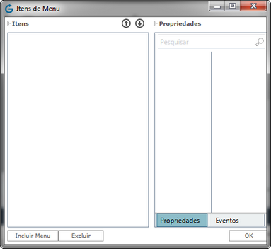 A janela Itens de menu aparecerá;