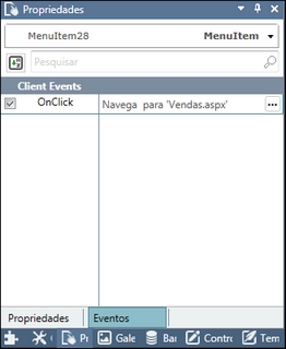 5. Com a opção de menu selecionada, pressione <F4> para exibir o painel Propriedades e clique em Eventos;