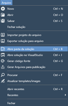 pode ser usado para exibir a pasta da solução. O atalho <Ctrl> + <B> também pode ser usado.