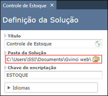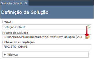 Se você desejar, poderá alterar o nome da pasta onde suas soluções serão armazenadas. Para alterar a pasta, utilize o botão para abrir pastas na opção Pasta da solução: