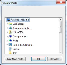 Selecione a pasta desejada ou crie uma nova pasta, através da janela Procurar pasta: