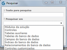 A combinação <Ctrl> + <F> é utilizada para abrir a caixa "Pesquisar", que possibilita a procura de itens na solução.
