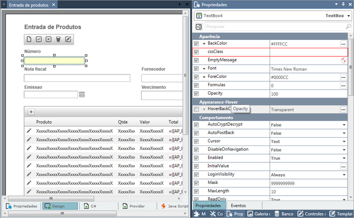 Observe os procedimentos no próximo tópico para criar e aplicar uma classe CSS a um controle.