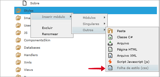 A classe deverá estar em um arquivo CSS na pasta Styles, na árvore do projeto, e será também armazenado na pasta Styles, dentro da pasta do projeto.