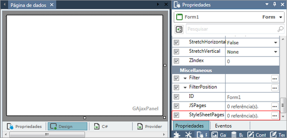 A página onde está o controle que vai usar a classe CSS precisa fazer uma referência ao arquivo CSS, na pasta Styles. O nome do arquivo deverá ser inserido na propriedade StyleSheetPages da página.