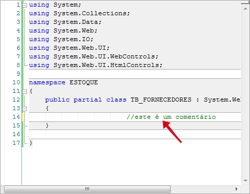 Observe a figura abaixo, o comentário está inserido em cor verde.