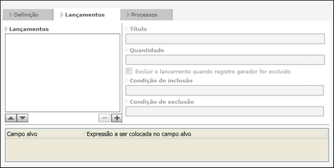 Se você relacionou uma ou mais tabelas auxiliares, a interface representada pela figura abaixo estará habilitada para a definição de lançamentos.